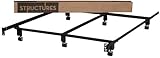 Support your mattress with the sturdiest bed frame design available. The unique wedgelock connectors become stronger as more weight is applied and can support virtually any practical weight. The bed frame assembles easily in seconds with absolutely no tools. Features a lifetime manufacturer's warranty against defects and workmanship. The six rug rollers are 2-1/2" wide and with two of the rollers locking. The center support bar is 2-1/2" wide and made from double rail angle iron. Side rails with protective end caps and crossarms are both 1-1/2" x 1-1/2". Extra wide construction offset to fit virtually all headboards. Deeply recessed legs provide extra toe room and prevent foot injury. Powder coated in a stylish black matte. Available in Cal King, King, Queen, Full, and Twin configurations.